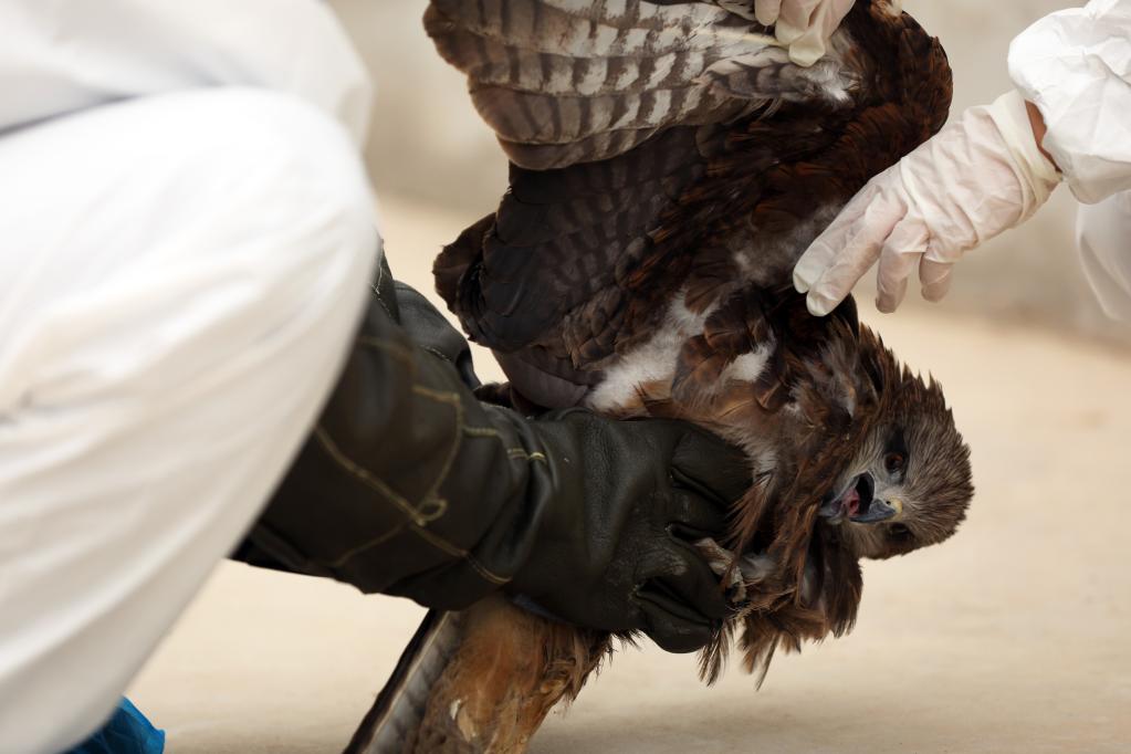 工作人員對黑耳鳶進(jìn)行救治。新華社記者郭剛 攝