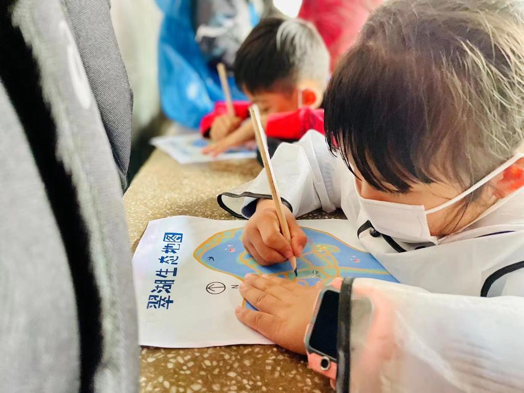 2022年3月17日,在云南省昆明市翠湖公園,參加科普活動(dòng)的孩子通過(guò)學(xué)習到的生態(tài)及生物知識,繪制翠湖生態(tài)地圖。(受訪(fǎng)者供圖)