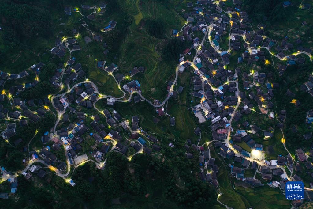 這是廣西融水苗族自治縣桿洞鄉錦洞村夜景(無(wú)人機照片,2021年8月30日攝)。新華社記者 黃孝邦 攝