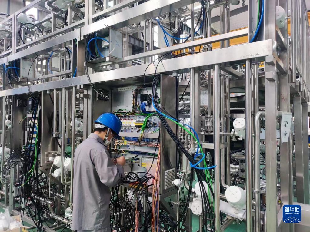 5月14日,工人在位于上海市金山區的上海東富龍制藥設備制造有限公司廠(chǎng)區內作業(yè)。新華社發(fā)