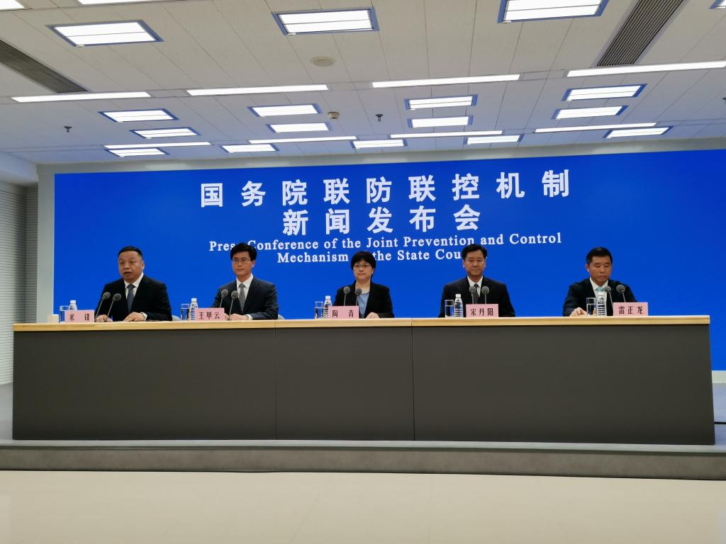 國務(wù)院聯(lián)防聯(lián)控機制新聞發(fā)布會(huì )現場(chǎng)。新華社記者 田曉航 攝