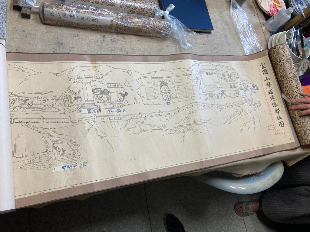 由于申報文本和播放的幻燈片,不足以展現大足石刻的分布和規模,加上語(yǔ)言理解上的差異,在場(chǎng)專(zhuān)家疑問(wèn)很多。眼見(jiàn)審議受阻,郭相穎急中生智,拿出了大足石刻手繪長(cháng)卷的文本資料?!拔艺f(shuō)這個(gè)圖都是我親自畫(huà)的,他們一下子對我有點(diǎn)尊敬了?!苯?jīng)討論,現場(chǎng)專(zhuān)家得出一個(gè)結論:大足石刻不僅藝術(shù)水平高超,而且規模宏大。