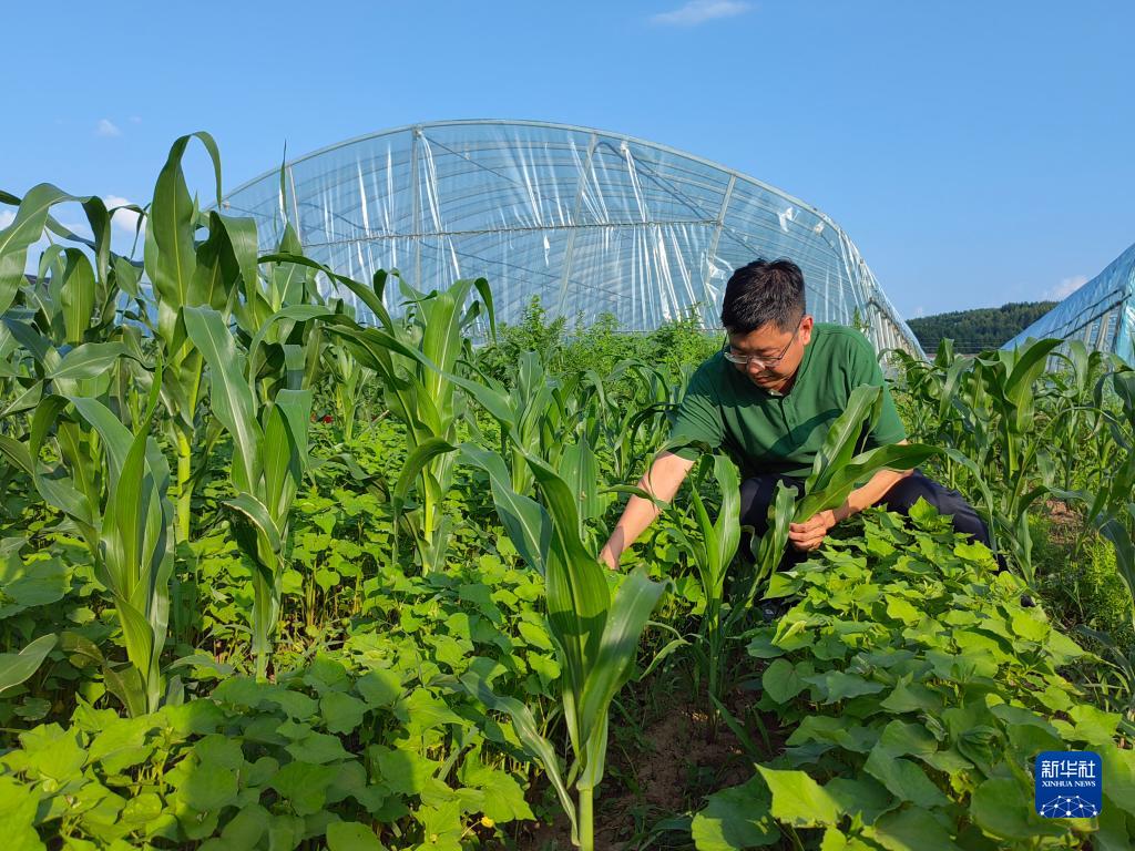 在吉林省東遼縣,中科院東北地理與農業(yè)生態(tài)研究所研究員李向楠在試驗田里觀(guān)察覆蓋作物(2022年7月5日攝)。新華社記者 薛欽峰 攝