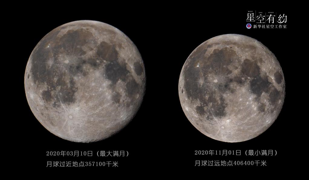 這是楊婧2020年拍攝的該年度“最大滿(mǎn)月”和“最小滿(mǎn)月”(拼版)。(本人供圖)