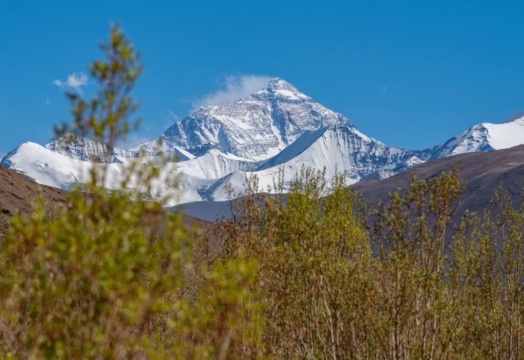 在扎西宗鄉拍攝的珠穆朗瑪峰。新華社記者 孫非 攝