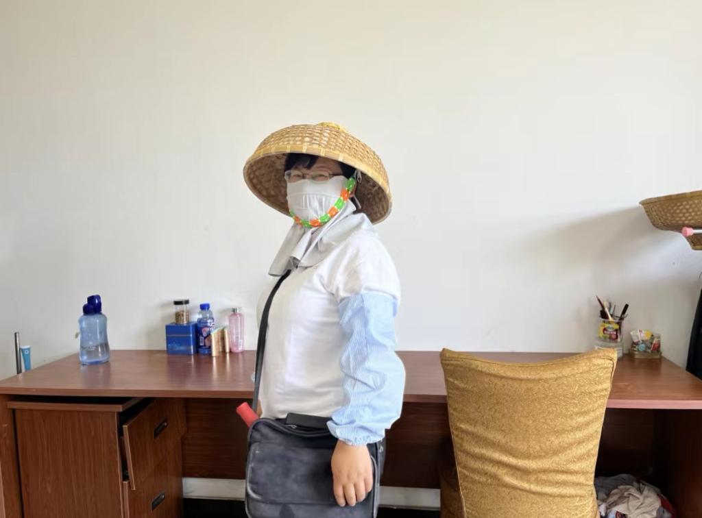 上午10點(diǎn),熱浪洶涌,水稻田里已經(jīng)燙得無(wú)法下腳?;氐绞覂?,周紅英滿(mǎn)身的泥土,身體冒著(zhù)熱氣。盡管全副武裝,包裹嚴實(shí),她的臉還是被曬得黑里透紅?!傲骱固?,防曬霜被洗掉了?!?/p>