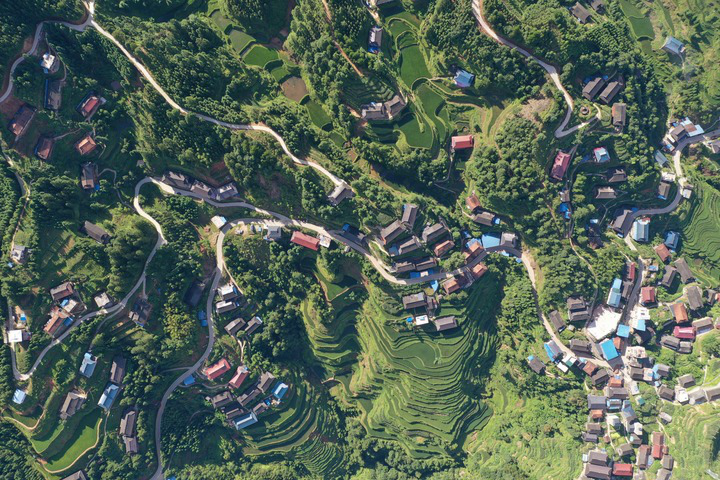 這是廣西融水苗族自治縣桿洞鄉黨鳩村的村屯公路(7月22日攝,無(wú)人機照片)。新華社記者 黃孝邦 攝