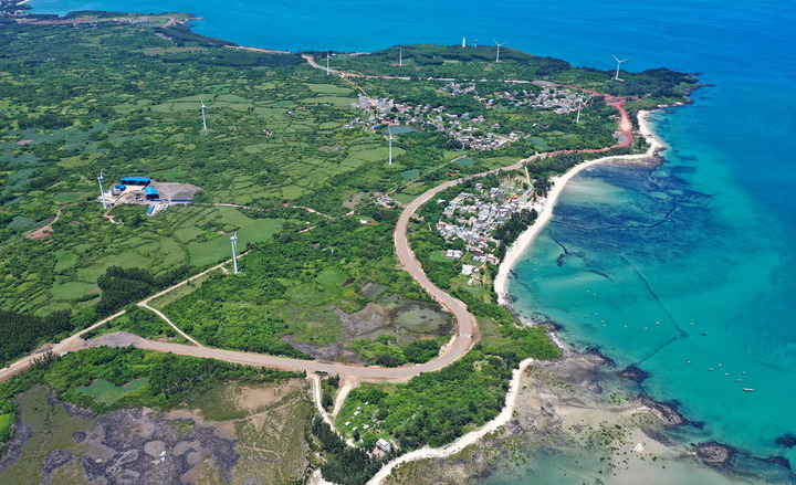 海南環(huán)島旅游公路儋州段施工現場(chǎng)(無(wú)人機照片)。新華社記者 郭程 攝