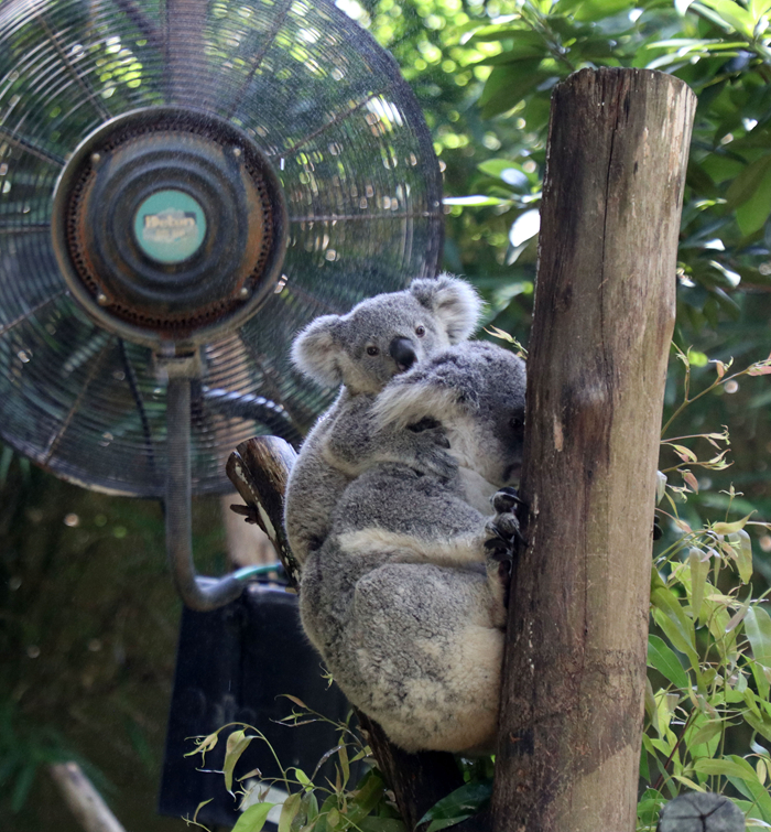 7月22日,在廣州長(cháng)隆野生動(dòng)物世界,考拉在風(fēng)扇前休息。