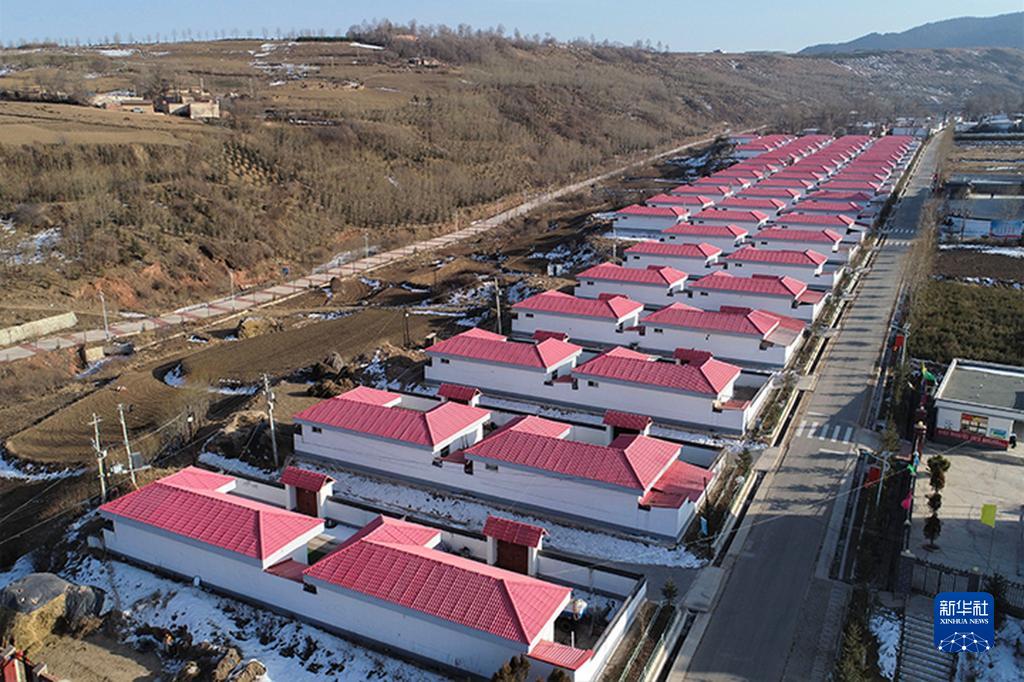 2021年2月6日在甘肅省定西市渭源縣元古堆村拍攝的鄉村道路和易地扶貧搬遷點(diǎn)。新華社記者 馬希平 攝