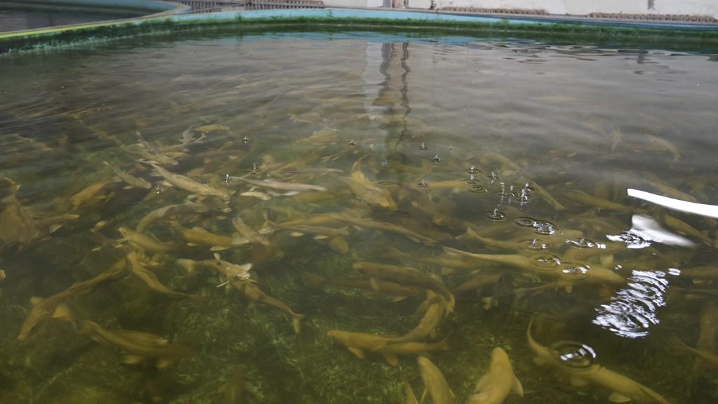 位于青海省海北藏族自治州剛察縣的青海湖裸鯉救護中心沙柳河泉吉河增殖實(shí)驗站,是湟魚(yú)“人工大產(chǎn)房”之一。記者看到,在實(shí)驗站車(chē)間里,分布著(zhù)一個(gè)個(gè)圓形大水缸,密密麻麻的小魚(yú)苗形似小蝌蚪般,隨著(zhù)清澈的水流在水缸內快速地轉著(zhù)圈游動(dòng)。