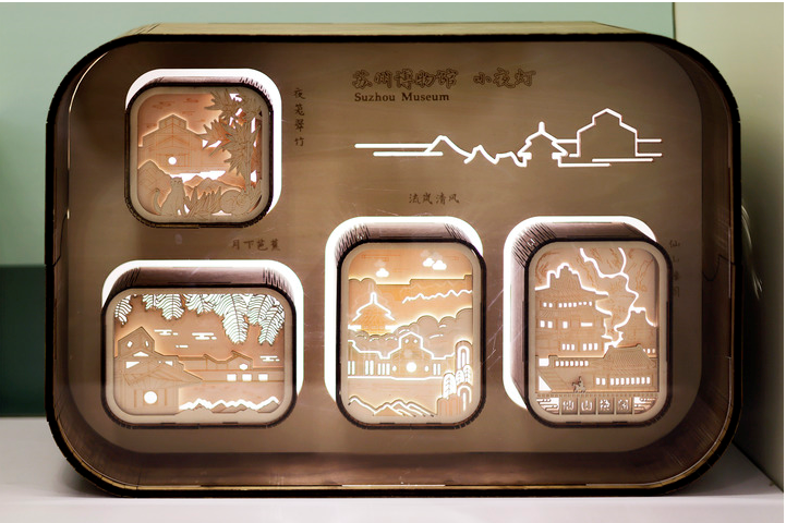 5月15日在蘇州博物館文創(chuàng )商店拍攝的以博物館建筑為設計靈感的小夜燈系列文創(chuàng )產(chǎn)品。 新華社發(fā)(倪黎祥 攝)
