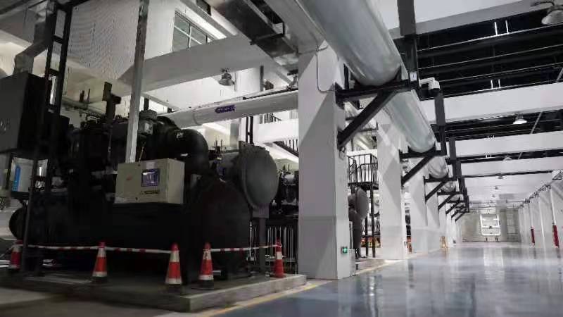 在濟南市CBD南部能源中心,集中運行的制冷站替代了原來(lái)各公共建筑自建的分散制冷系統,實(shí)現集約用地、高效節能。(受訪(fǎng)單位供圖)