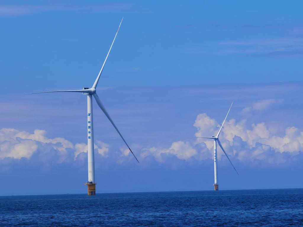 這是2021年7月19日拍攝的華能(莊河)風(fēng)力發(fā)電有限責任公司建設的海上風(fēng)電場(chǎng)址。(新華社發(fā))
