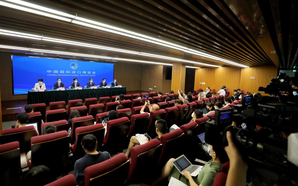 第五屆中國國際進(jìn)口博覽會(huì )開(kāi)幕倒計時(shí)100天新聞通氣會(huì )在上海市政府新聞發(fā)布廳舉行(2022年7月27日攝)。新華社記者 方喆 攝