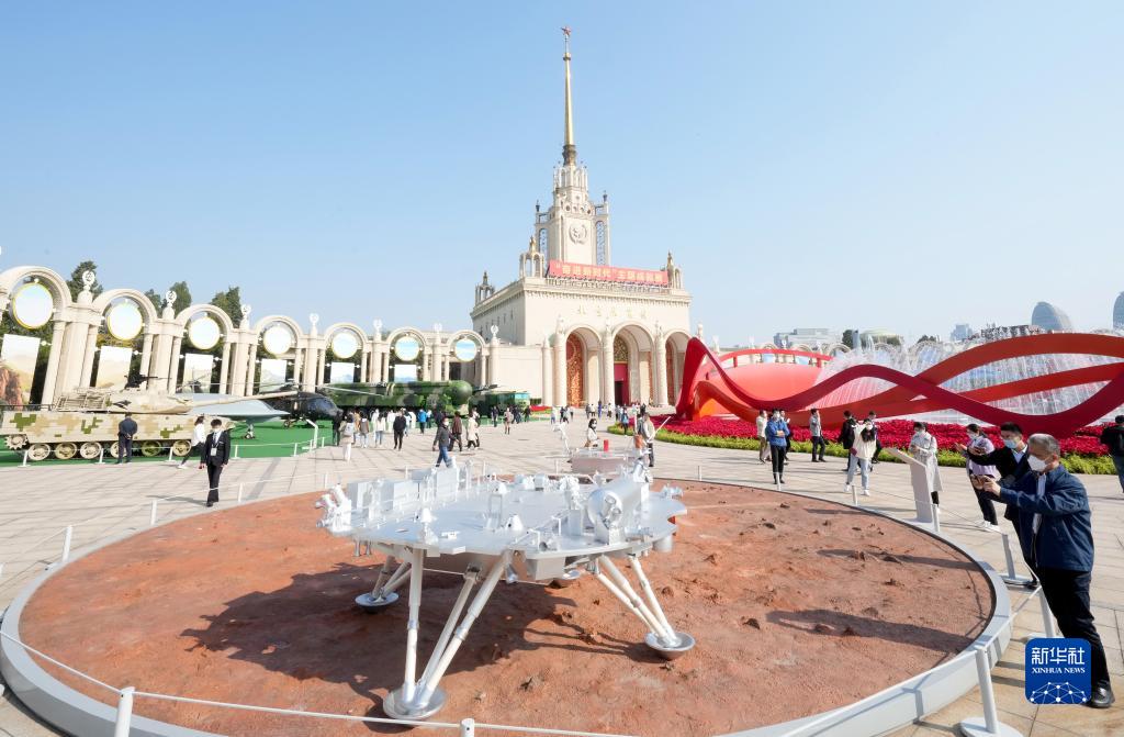 10月7日,觀(guān)眾在“奮進(jìn)新時(shí)代”主題成就展上參觀(guān)天問(wèn)一號著(zhù)陸器模型。當日是國慶長(cháng)假的最后一天,大批觀(guān)眾來(lái)到北京展覽館參觀(guān)“奮進(jìn)新時(shí)代”主題成就展。新華社記者 王毓國 攝