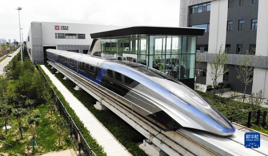 這是在山東青島拍攝的時(shí)速600公里高速磁浮交通系統(無(wú)人機照片,2021年7月20日攝)。新華社記者 李紫恒 攝