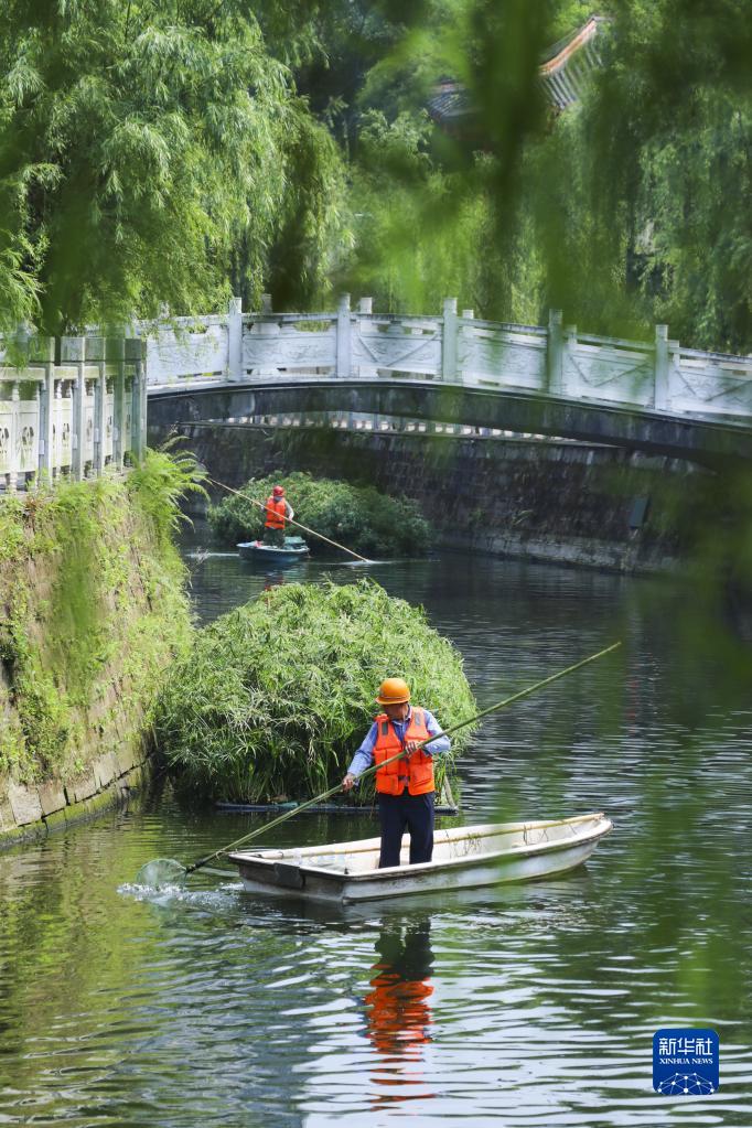 工作人員在重慶永川臨江河紅旗河段清漂(2022年5月7日攝)。新華社發(fā)(劉歡 攝)