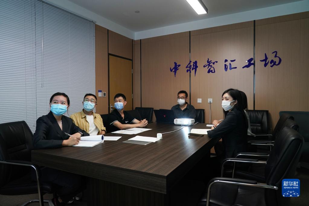 中科智匯工場(chǎng)的工作人員討論創(chuàng )新項目的可行性(9月22日攝)。新華社記者 任超 攝