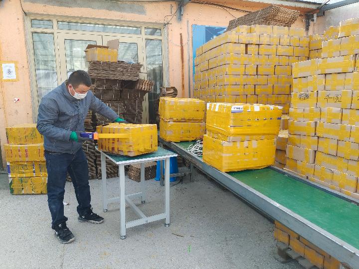 工人將玉米面條產(chǎn)品封裝準備發(fā)貨。新華社記者 陳聰 攝