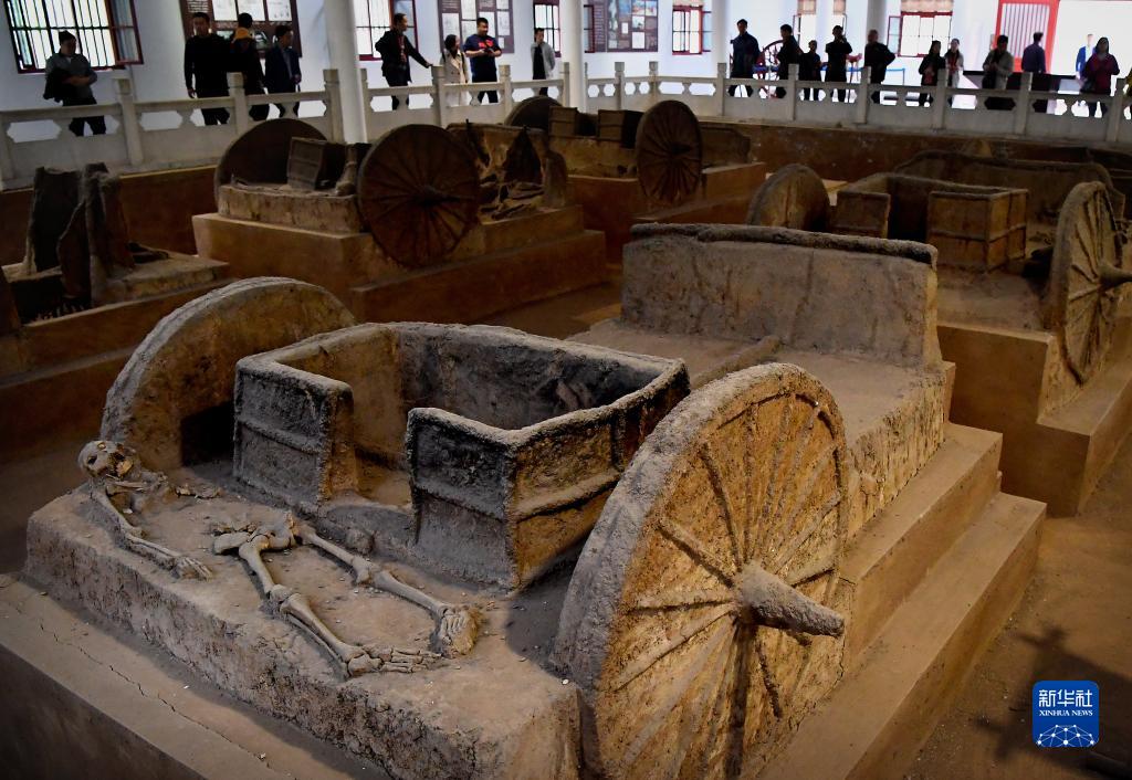 游客在河南安陽(yáng)殷墟宮殿宗廟遺址內的車(chē)馬坑參觀(guān)(2018年10月14日攝)。 新華社記者 李安 攝