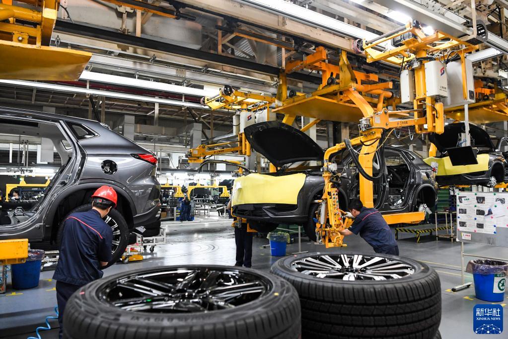 在滿(mǎn)負荷運轉的一汽大眾汽車(chē)有限公司成都分公司車(chē)間,每小時(shí)有130臺新車(chē)下線(xiàn)(2022年12月15日攝)。新華社記者 楊進(jìn) 攝