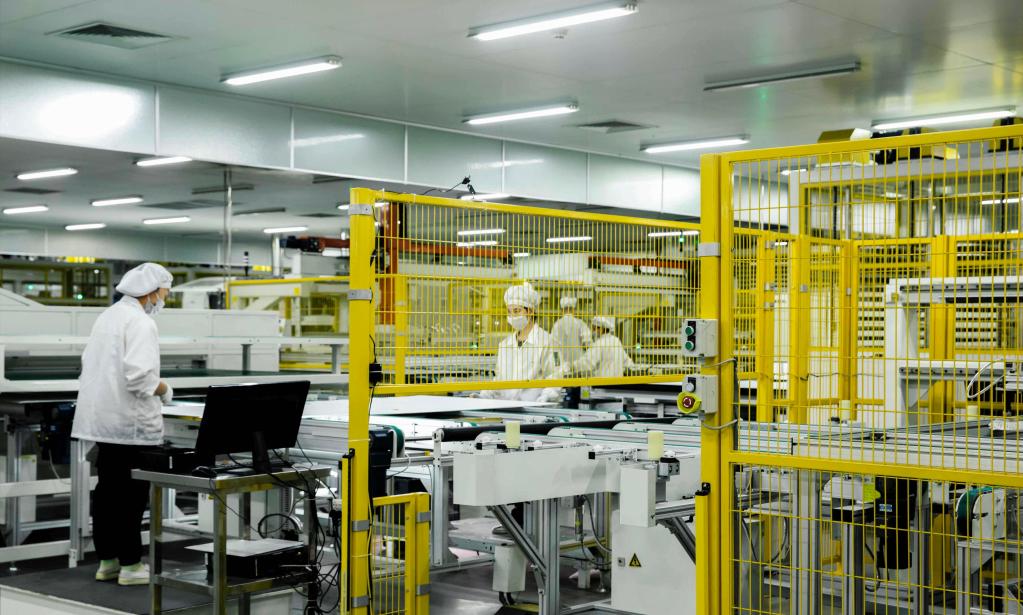 率先復工復產(chǎn)的光伏組件企業(yè)生產(chǎn)現場(chǎng)。(受訪(fǎng)者供圖)