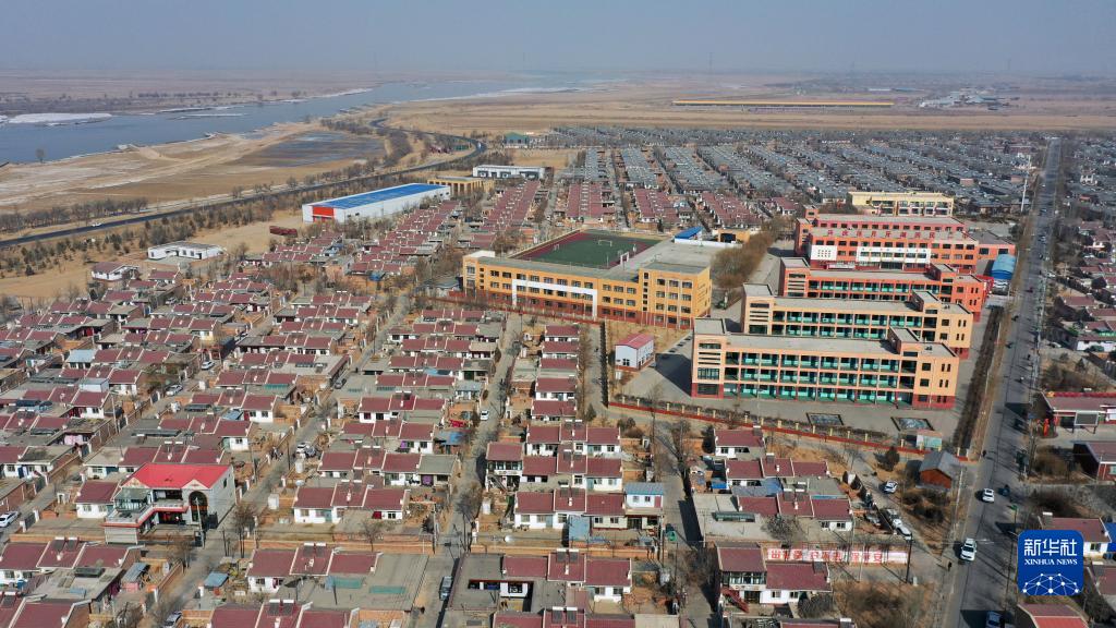寧夏銀川市興慶區月牙湖鄉濱河家園移民村(無(wú)人機照片,2021年2月11日攝)。新華社記者 王鵬 攝