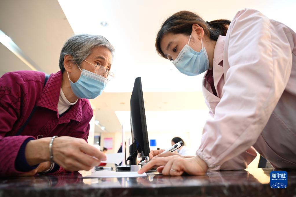 福建省三明市第一醫院的醫保辦工作人員(右)向前來(lái)咨詢(xún)藥品報銷(xiāo)問(wèn)題的居民講解相關(guān)政策(2020年11月18日攝)。新華社記者 姜克紅 攝