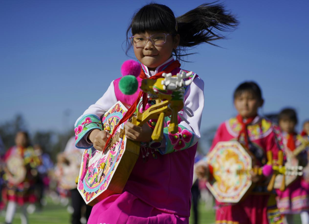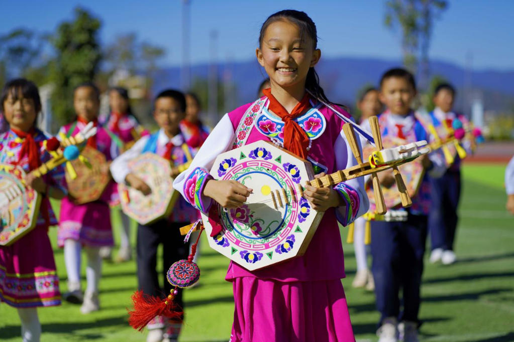 同學(xué)們手持彝族特色樂(lè )器龍頭四弦琴