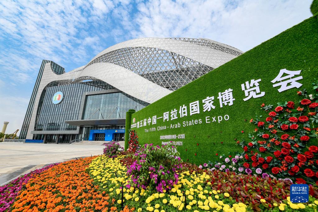 這是2021年8月18日拍攝的第五屆中國-阿拉伯國家博覽會(huì )開(kāi)幕大會(huì )會(huì )址——寧夏國際會(huì )堂外景。新華社記者 馮開(kāi)華 攝