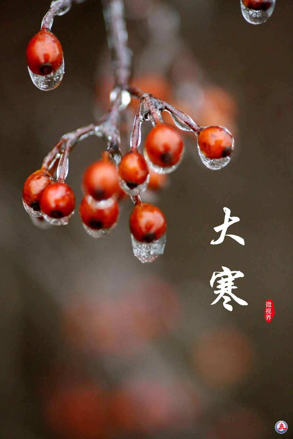 ↑江蘇省連云港市,野生小紅果上掛著(zhù)冰。新華社發(fā)(王春 攝)