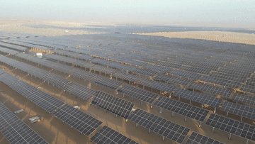 2022年9月,騰格里沙漠3GW新能源基地光伏復合項目開(kāi)工。這是國家第一條以開(kāi)發(fā)沙漠光伏大基地、輸送新能源為主的特高壓輸電通道——“寧電入湘”工程的重點(diǎn)配套項目。