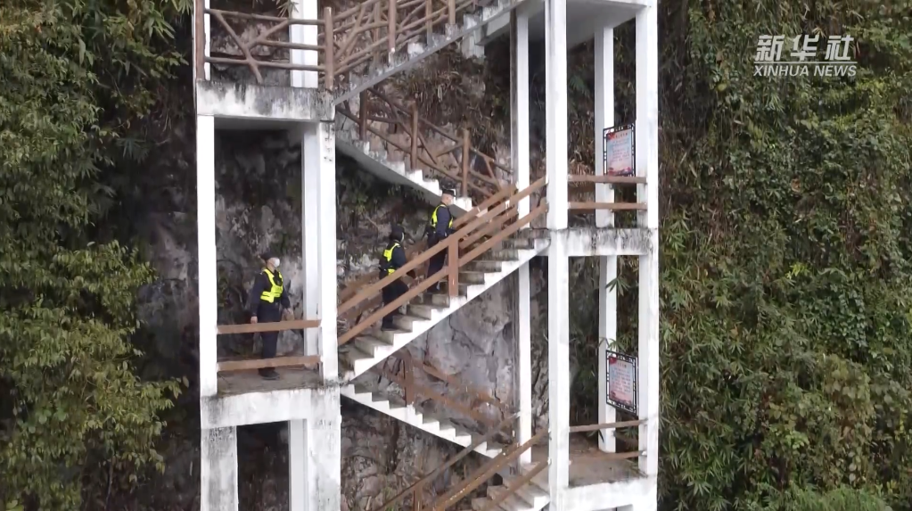 在廣西那坡縣邊境線(xiàn)上,588號界碑屹立在百南鄉紅石山1096米的懸崖之上,通往界碑的巡邊棧道如同“天梯”一般,緊挨著(zhù)懸崖絕壁曲折蜿蜒而上。