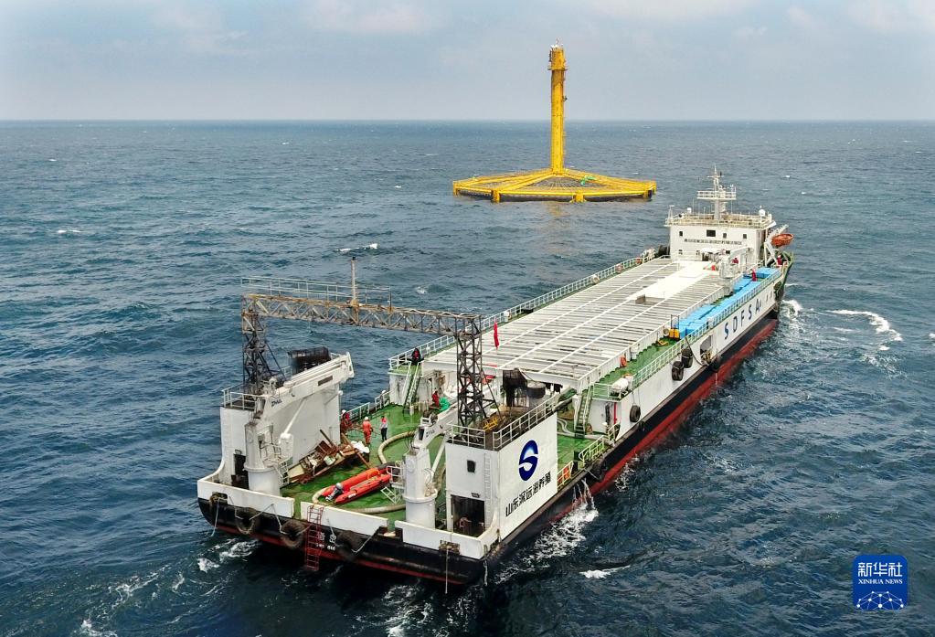 由江蘇啟東中遠海運海工為國外客戶(hù)訂制的N966自升式風(fēng)電安裝船交付啟航(2022年12月20日攝,無(wú)人機照片)。新華社發(fā)(許叢軍 攝)