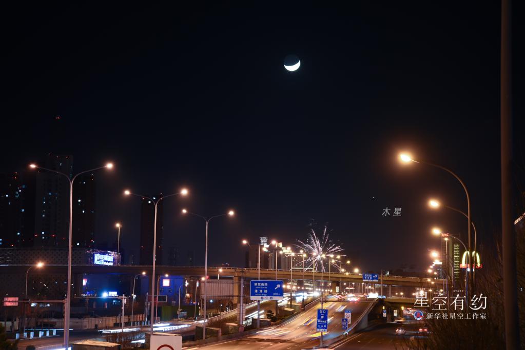 天津市天文愛(ài)好者楊婧2023年1月26日傍晚在天津市河西區拍攝的木星伴月。(本人供圖)