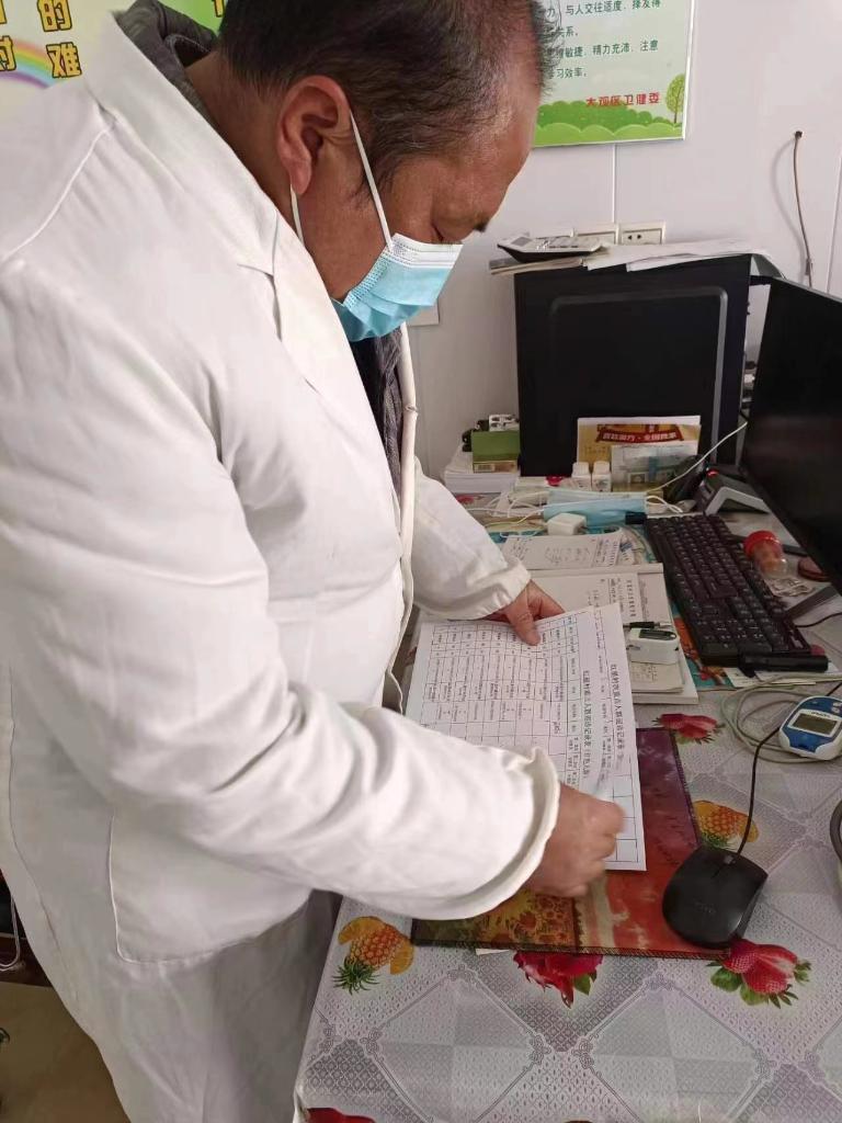 在紅星村,甘攀峰和村“兩委”同志一起,對全村1000多戶(hù)居民的健康狀況進(jìn)行了梳理,為57名需重點(diǎn)關(guān)注健康狀況的村民建立了“健康臺賬”?!拔覀兏鶕挲g和患基礎病情況,對重點(diǎn)人群進(jìn)行紅色、黃色標識登記,每3天上門(mén)一次給他們檢查血壓、血糖和血氧等?!备逝史逭f(shuō),“村民還可以隨時(shí)撥打電話(huà)求醫,我隨時(shí)準備著(zhù)上門(mén)看病送藥?!?/p>