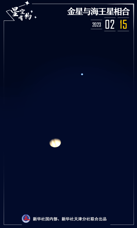 新華社天津2月13日電(記者周潤?。┨煳目破諏?zhuān)家介紹,2月15日晚,金星與海王星相合上演“結伴游”,這是一次非常難得的行星極近現象,屆時(shí)如果天氣晴好,感興趣的公眾可借助小型天文望遠鏡見(jiàn)證這“親密一刻”。
