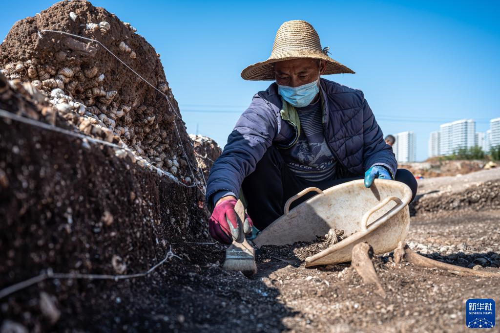 考古工作者在云南古城村遺址現場(chǎng)進(jìn)行清理工作(2022年11月24日攝)。新華社記者 王冠森 攝