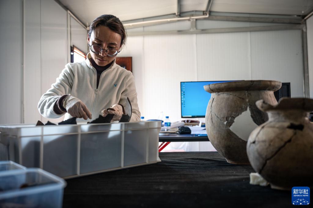 云南古城村遺址考古領(lǐng)隊、云南省文物考古研究所副研究館員周然朝在整理云南古城村遺址出土的文化遺物(2022年11月24日攝)。新華社記者 王冠森 攝