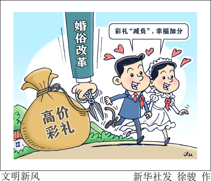隨著(zhù)經(jīng)濟快速發(fā)展和社會(huì )劇烈變遷,婚俗也發(fā)生巨大變化,一些地方的“天價(jià)彩禮”、盲目攀比等婚姻陋習與現代文明社會(huì )形成巨大反差。如何為愛(ài)“減負”,讓婚俗與時(shí)俱進(jìn),各地不斷開(kāi)展探索。