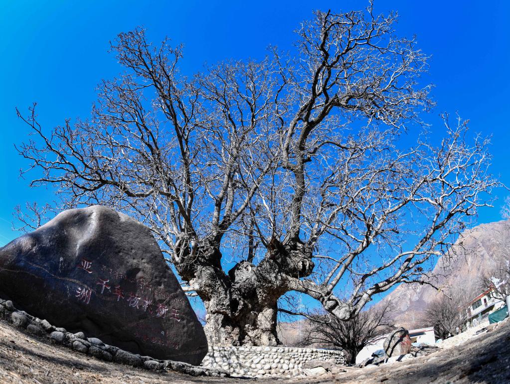 山南市加查縣拉崗村的千年核桃樹(shù)(2月1日攝)。新華社記者晉美多吉 攝