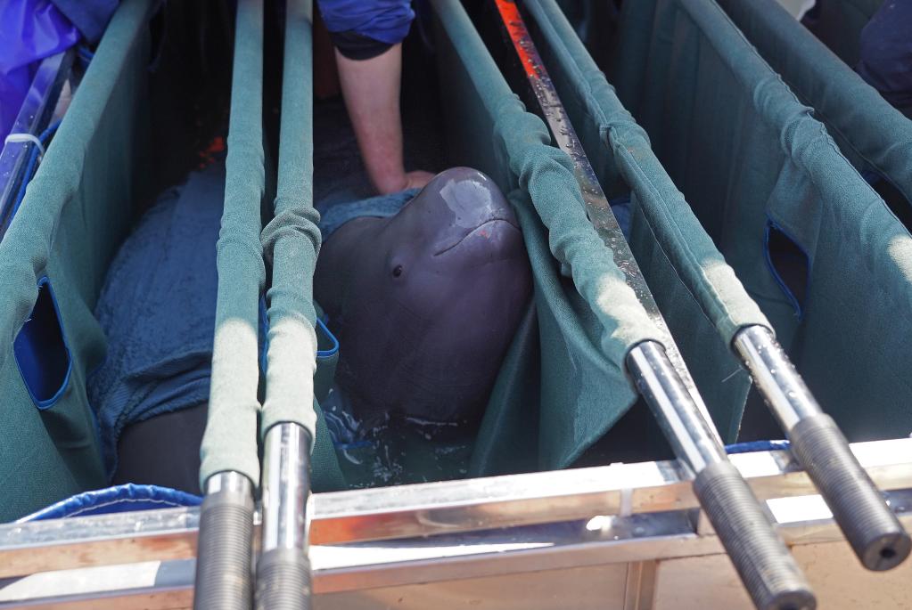經(jīng)過(guò)三天的人工圍捕、體檢篩選、護理運輸,各相關(guān)部門(mén)緊密聯(lián)動(dòng),將兩頭雄性江豚成功遷移至位于江西省湖口縣的鄱陽(yáng)湖南北港水域。