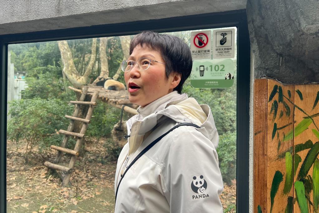 侯蓉講述她與大熊貓的故事(2月23日攝)。新華社記者 余里 攝