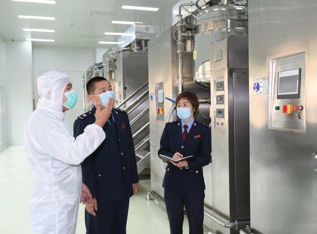 在湖州市吳興區埭溪鎮“美妝小鎮”內的一家化妝品生產(chǎn)企業(yè),吳興區稅務(wù)局工作人員在車(chē)間了解生產(chǎn)情況,為企業(yè)辦理出口退稅進(jìn)行上門(mén)輔導。新華社記者 翁忻旸 攝