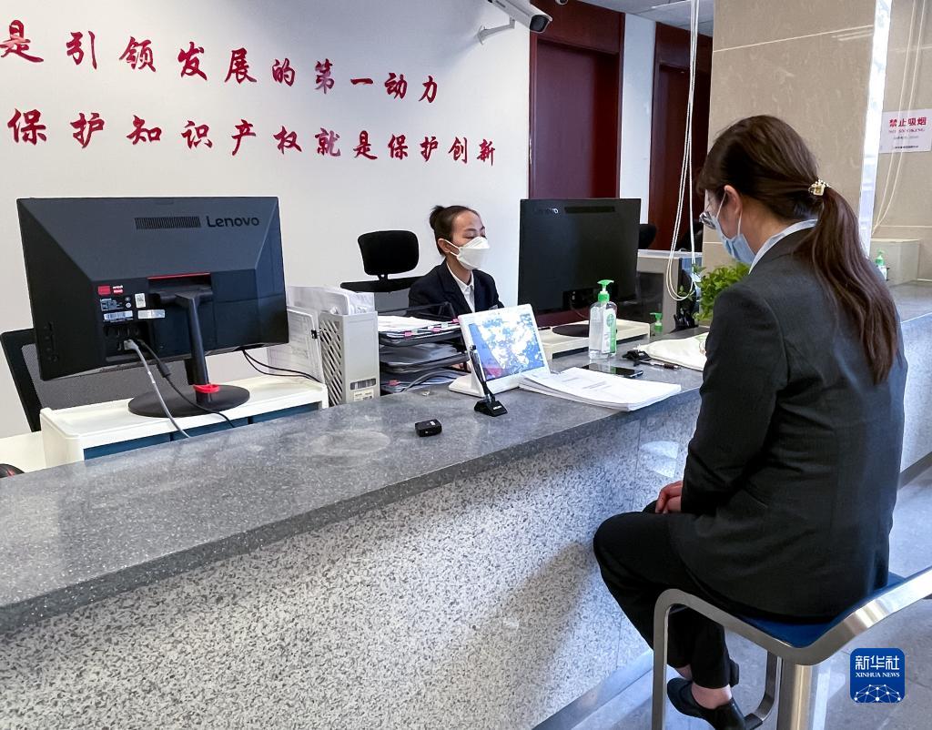 3月9日,上海市知識產(chǎn)權局工作人員為企業(yè)辦理業(yè)務(wù)。 新華社記者 程思琪 攝