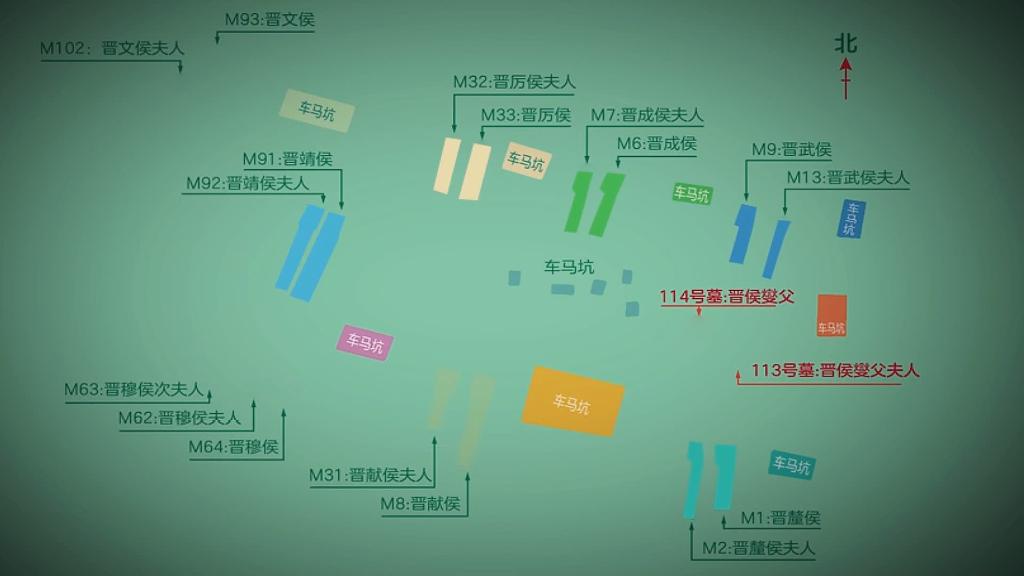 已經(jīng)發(fā)掘的8代晉侯分別為武、成、厲、靖、釐、獻、穆及晉文侯,并且只有把最后發(fā)掘的114號墓組排在先前最早的9號墓組之前,才符合晉侯墓地埋葬特征的演變趨勢。