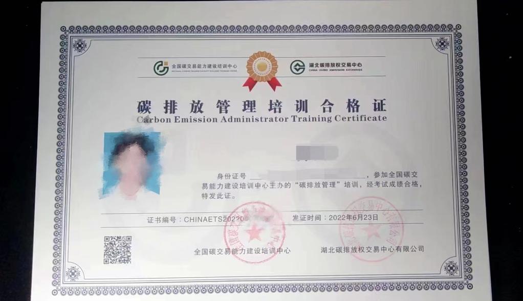 相關(guān)機構發(fā)放的碳排放管理培訓合格證?!。ㄊ茉L(fǎng)者供圖)