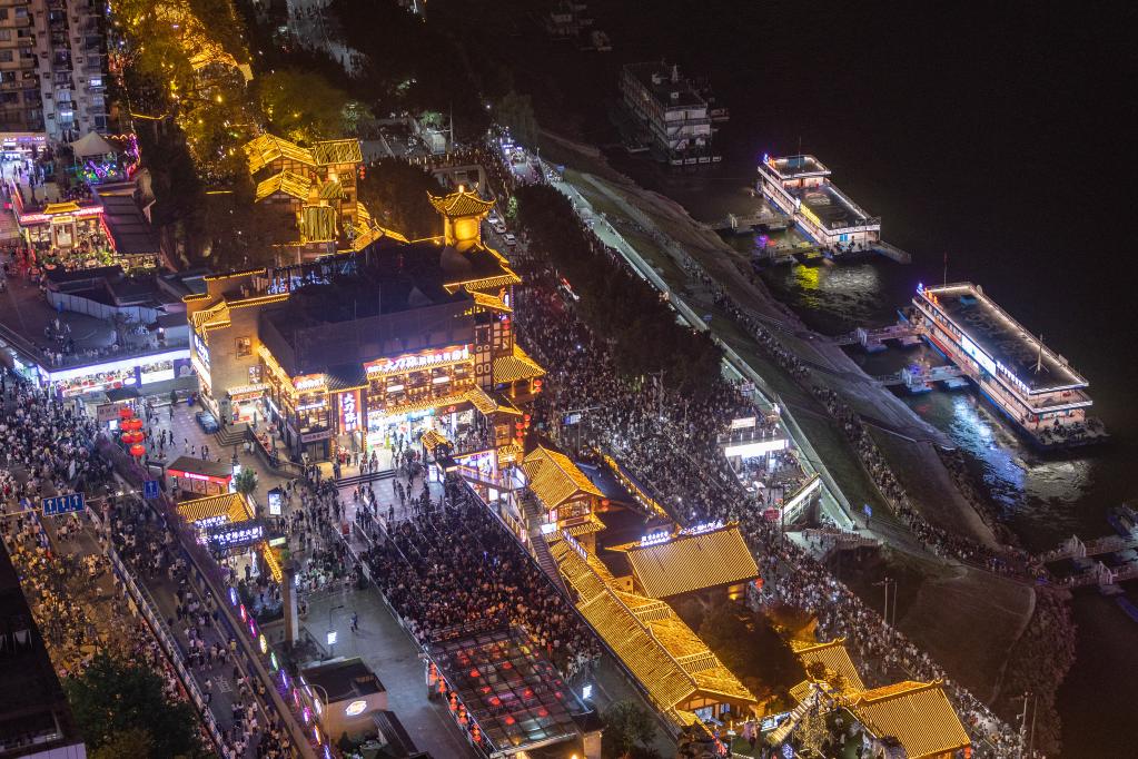 數據顯示,僅“五一”假期首日,洪崖洞景區進(jìn)園人數9.68萬(wàn)人次,未進(jìn)園在洪崖洞周邊的滄白路、千廝門(mén)大橋橋面以及嘉濱路“打卡”游客瞬時(shí)最高客流量接近3萬(wàn)人。
