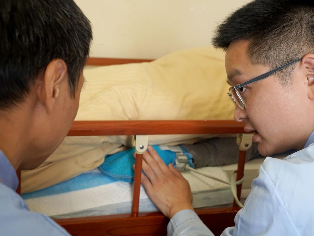 把老人從床上扶進(jìn)輪椅里,是養老護理員日常工作中的“高頻動(dòng)作”。慣常的操作方法,是護理員讓老人摟住自己的肩膀,然后把老人抱到輪椅上,護理員是使力的主體。年輕的護理員則依據科學(xué)理論,探索出新的方式:讓老人利用自己功能較好一側的軀體作支撐,護理員同時(shí)支撐其另一側,使其依靠自身力量站起來(lái),這可以幫助老人訓練自身軀體的功能。